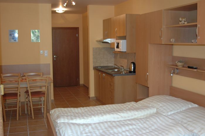 Jednopokojový apartmán s balkónem se nachází ve 4.patře FATRAPARKU.